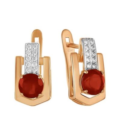 Золотые серьги с гранатом и фианитами с родированием 585*Золотой