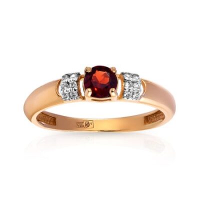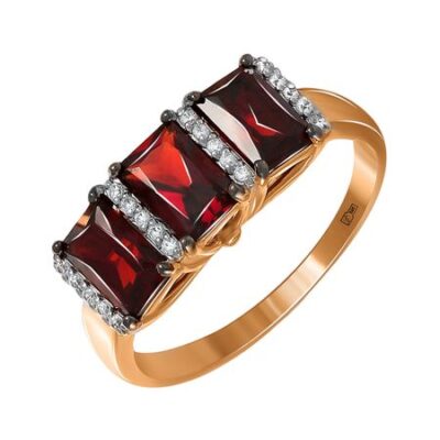 Кольцо из золота с гранатом и фианитами 585*Золотой