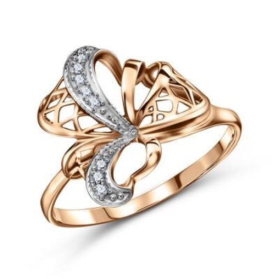 Серебряное кольцо с фианитами и позолотой. 585*Золотой