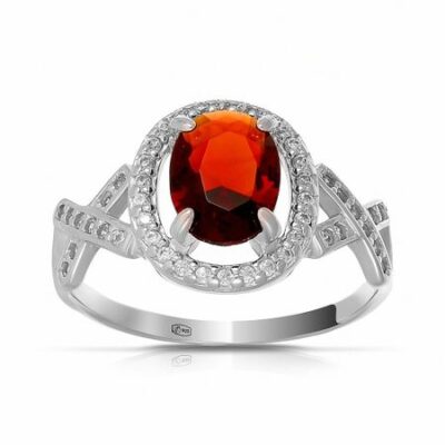 Кольцо из серебра с гранатом и фианитами 585*Золотой