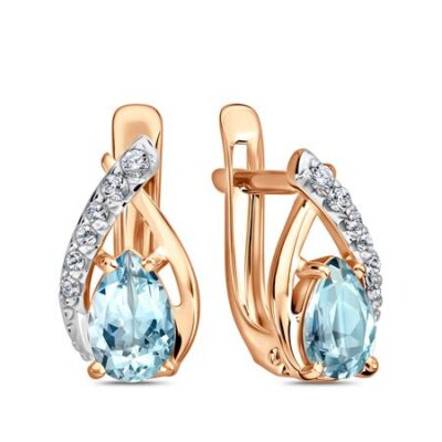 Золотые серьги с кварцем и фианитами с родированием 585*Золотой