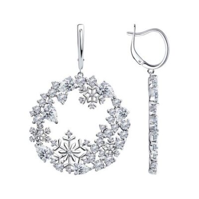 Серебряные серьги с фианитами и родированием SOKOLOV