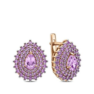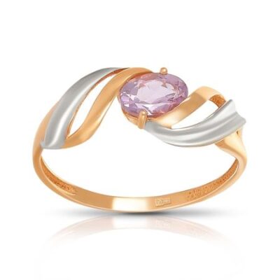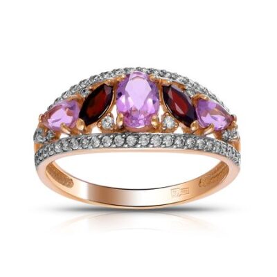 Золотое кольцо с аметистом и гранатом с фианитами 585*Золотой