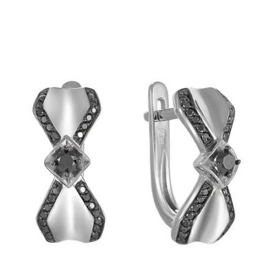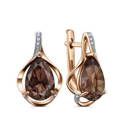 Золотые серьги с раухтопазами и фианитами с родированием 585*Золотой