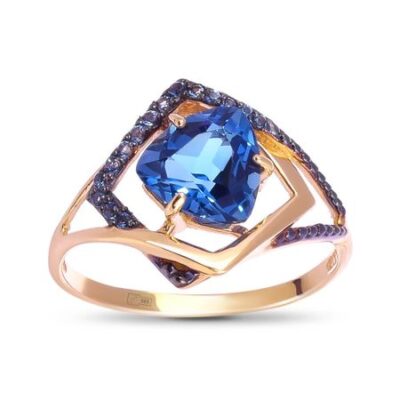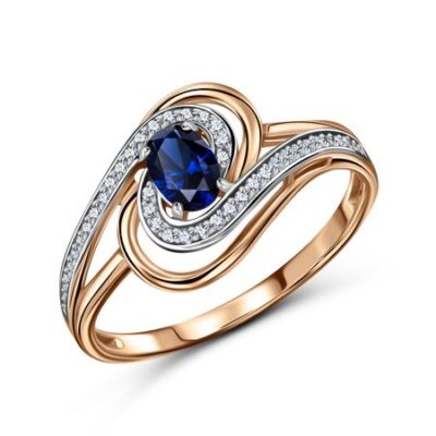 Золотое кольцо с сапфиром и бриллиантами с родированием 585*Золотой