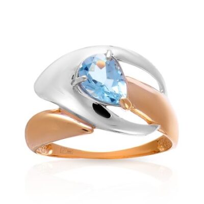 Серебряное кольцо с фианитами и позолотой 585*Золотой