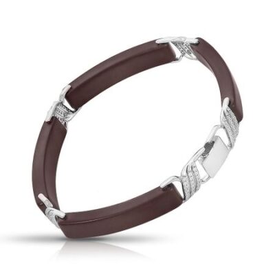 Серебряный браслет с керамикой и фианитами с родированием 585*Золотой