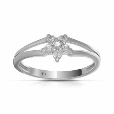 Кольцо Цветок из серебра с фианитами 585*Золотой
