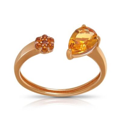 Кольцо из серебра с кварцем и фианитами 585*Золотой