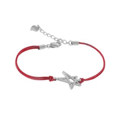 Браслет «красная нить» с серебряной вставкой и фианитами 585*Золотой