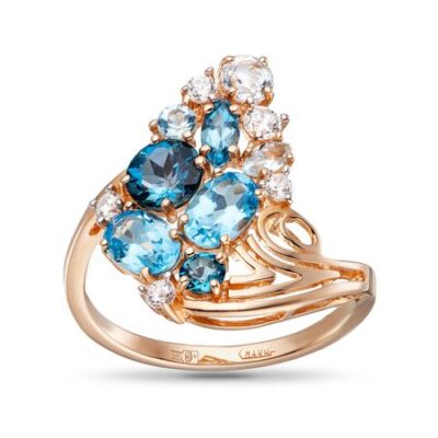 Серебряное кольцо с ювелирным кристаллом и фианитами 585*Золотой