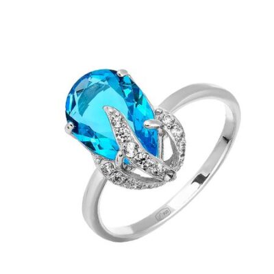 Серебряное кольцо с ювелирным кристаллом и фианитами с родированием 585*Золотой