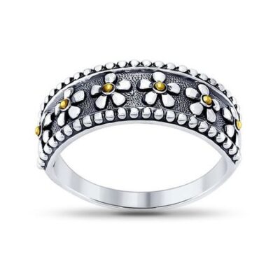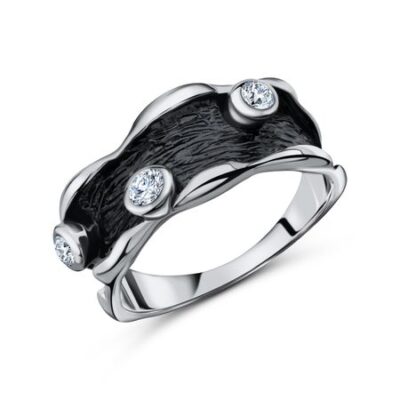 Серебряное кольцо с фианитами и родированием 585*Золотой