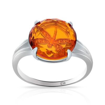 Кольцо из серебра с керамикой и фианитами 585*Золотой