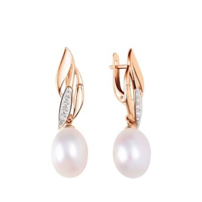 Серьги из золота с жемчугом и фианитами 585*Золотой