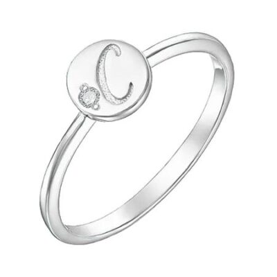 Серебряное кольцо Буква С с фианитом и родированием 585*Золотой