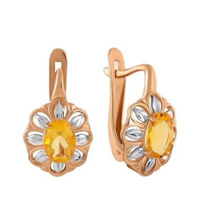 Золотые серьги с кристаллами и фианитами с родированием 585*Золотой