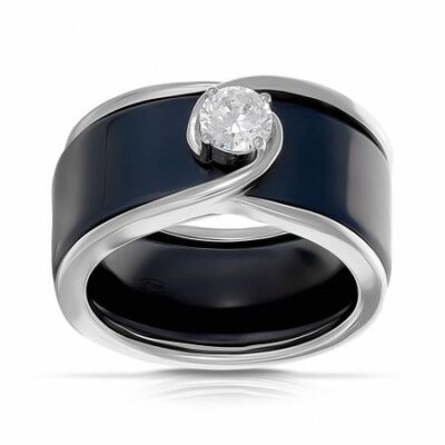 Серебряное кольцо с фианитом и родированием 585*Золотой