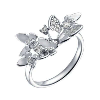Кольцо Бабочка из серебра с фианитами 585*Золотой