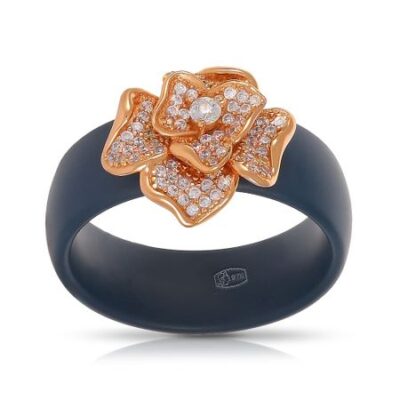 Кольцо Роза из серебра с керамикой и фианитами 585*Золотой