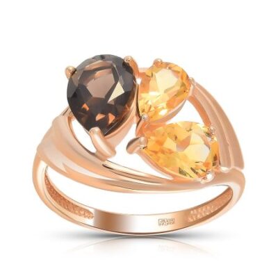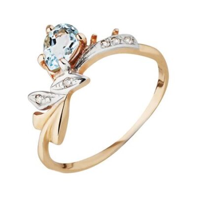 Золотое кольцо с топазом и фианитами и родированием 585*Золотой