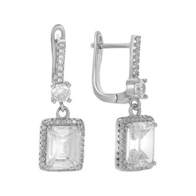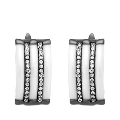 Серебряные серьги с керамикой и фианитами с родированием 585*Золотой