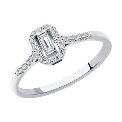 Серебряное кольцо с фианитами и родированием 585*Золотой