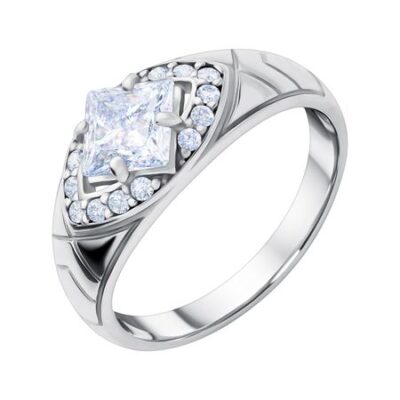 Серебряное кольцо с фианитами и родированием 585*Золотой