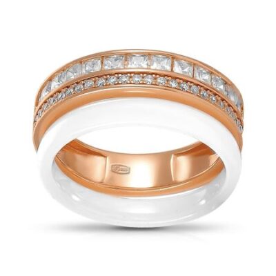 Серебряное кольцо с фианитами и родированием 585*Золотой