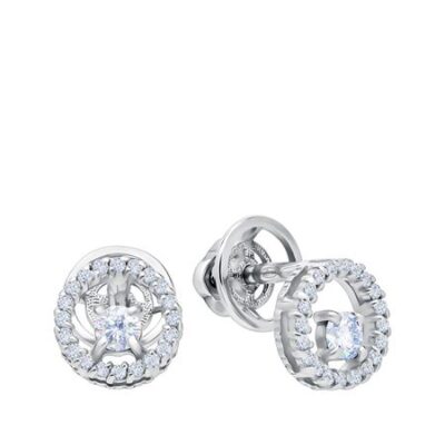 Серебряные серьги с муассанитами и фианитами с родированием 585*Золотой