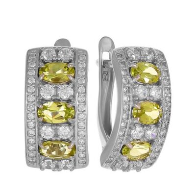 Серебряные серьги со шпинелью и фианитами с родированием 585*Золотой