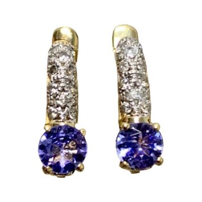 Серебряные серьги с танзанитами и фианитами с позолотой 585*Золотой