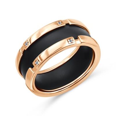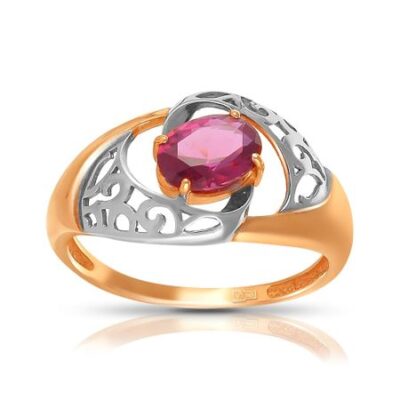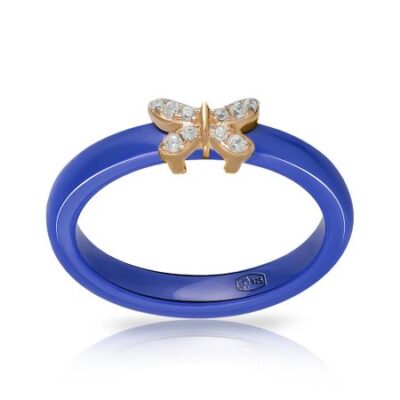 Серебряное кольцо с керамикой и фианитами 585*Золотой