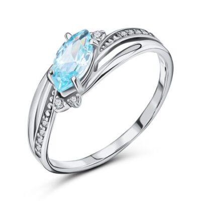 Серебряное кольцо с сапфиром и фианитами с родированием 585*Золотой