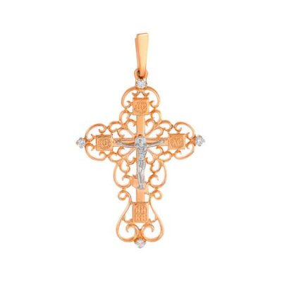 Золотые серьги с кристаллами и фианитами с родированием 585*Золотой