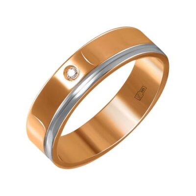 Золотое обручальное кольцо с бриллиантом и родированием 585*Золотой
