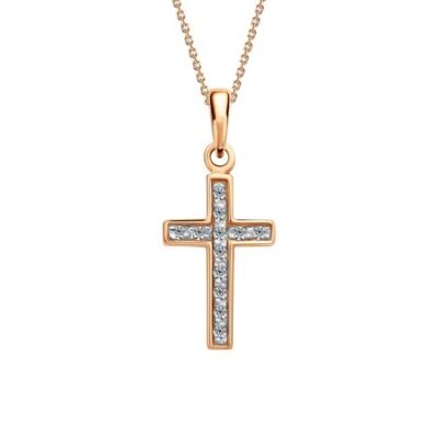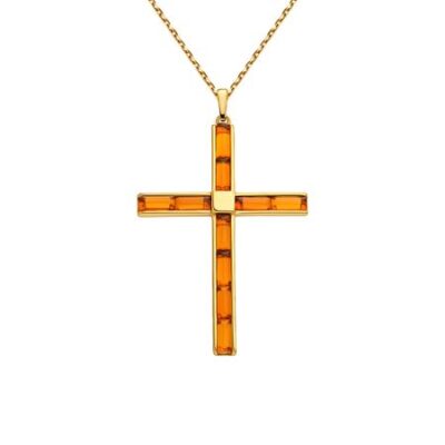 Серебряная подвеска Крест с янтарем и позолотой ВЫРИЦА
