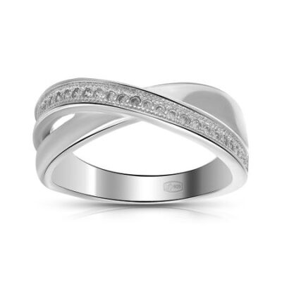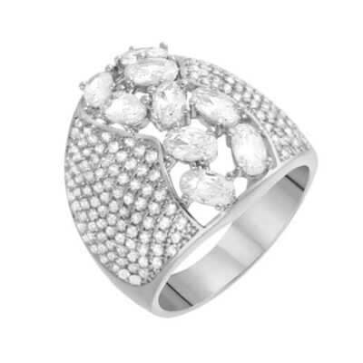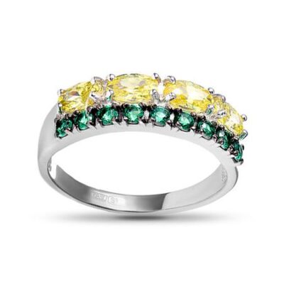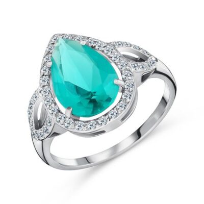 Серебряное кольцо с ювелирным кристаллом и фианитами с родированием 585*Золотой