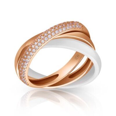 Кольцо Тринити из серебра с керамикой и фианитами 585*Золотой
