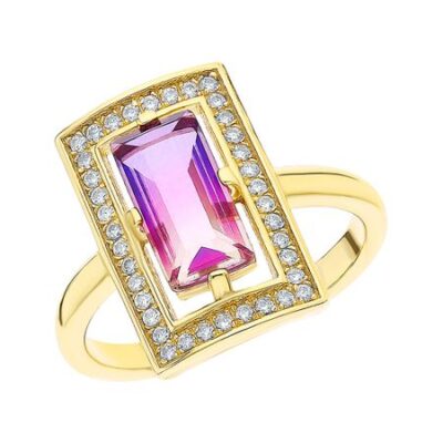 Серебряное кольцо с аметрином и фианитами с позолотой 585*Золотой