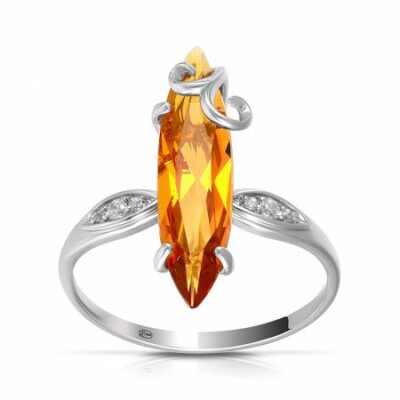 Кольцо из серебра с цитрином и фианитами 585*Золотой