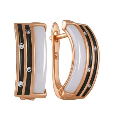 Серебряные серьги с эмалью и керамикой с фианитами 585*Золотой