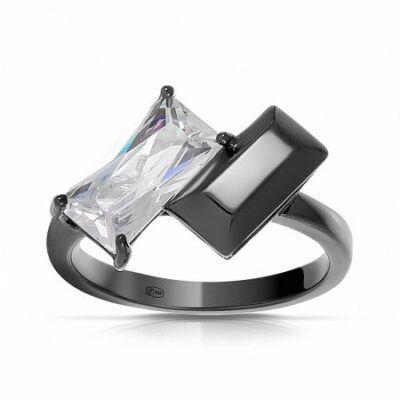 Серебряное кольцо с фианитом и родированием 585*Золотой