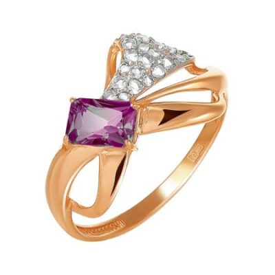 Золотое кольцо с александритом фианитами с родированием 585*Золотой