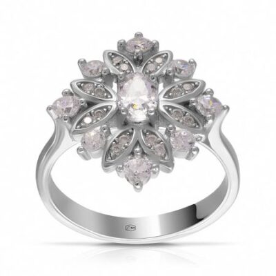 Серебряное кольцо с фианитами и родированием 585*Золотой