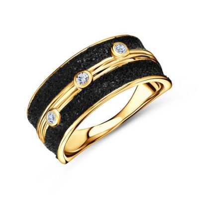 Серебряное кольцо с глиттером и фианитами с позолотой 585*Золотой