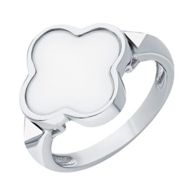 Серебряное кольцо Клевер с керамикой и эмалью с родированием 585*Золотой