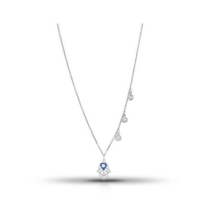 Серебряное колье Хамса с каплей с эмалью и фианитами с родированием 585*Золотой