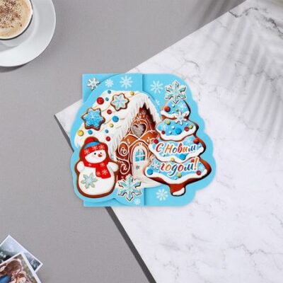 Мини-открытка двойная «С Новым Годом!» глиттер, 16.5×10 см Мир открыток