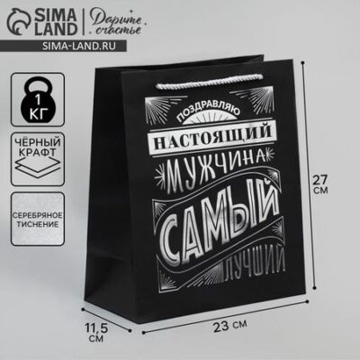 Пакет подарочный, упаковка, «Настоящий мужчина», чёрный крафт, 23 х 27 х 11.5 см Дарите Счастье